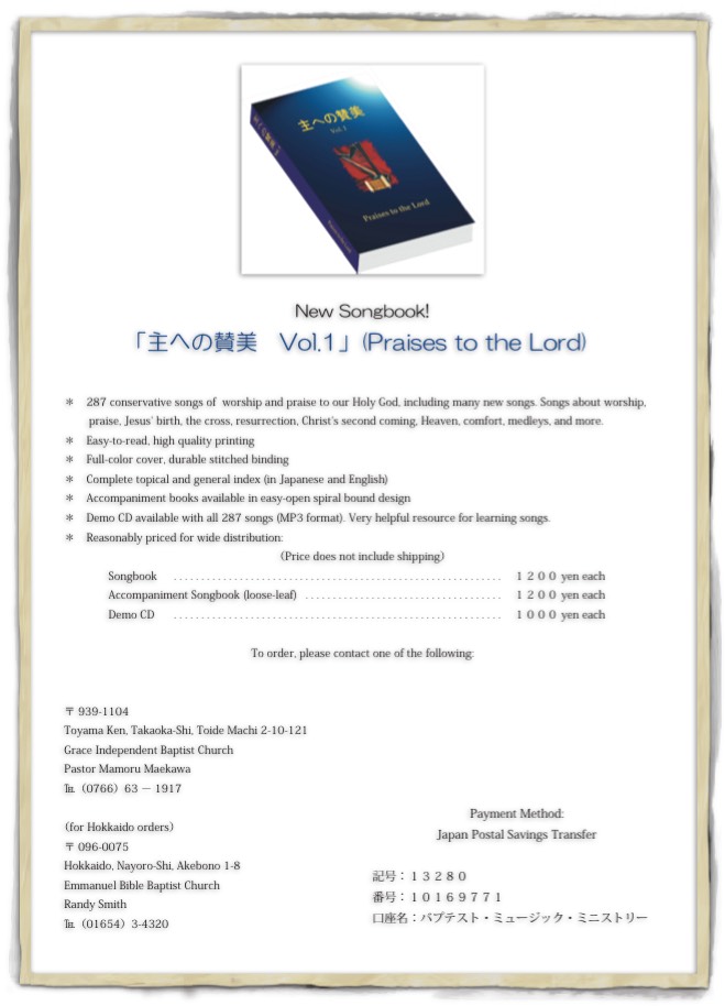このソングブックで賛美しましょう。ご注文ならば、